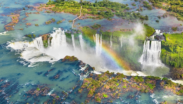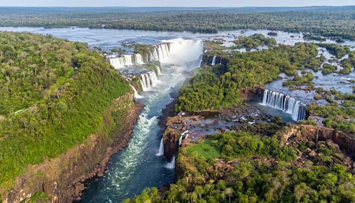 As Cataratas do Iguaçu ficam na fronteira entre a Argentina e o Brasil, dentro de dois parques nacionais protegidos: